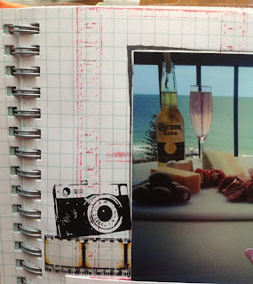 This last page isn't very clear, but I have used the custom designed film strip AltaMATZ inked and then stamped onto the page. It was just enough to alter a plain page and add a little pop of colour.
